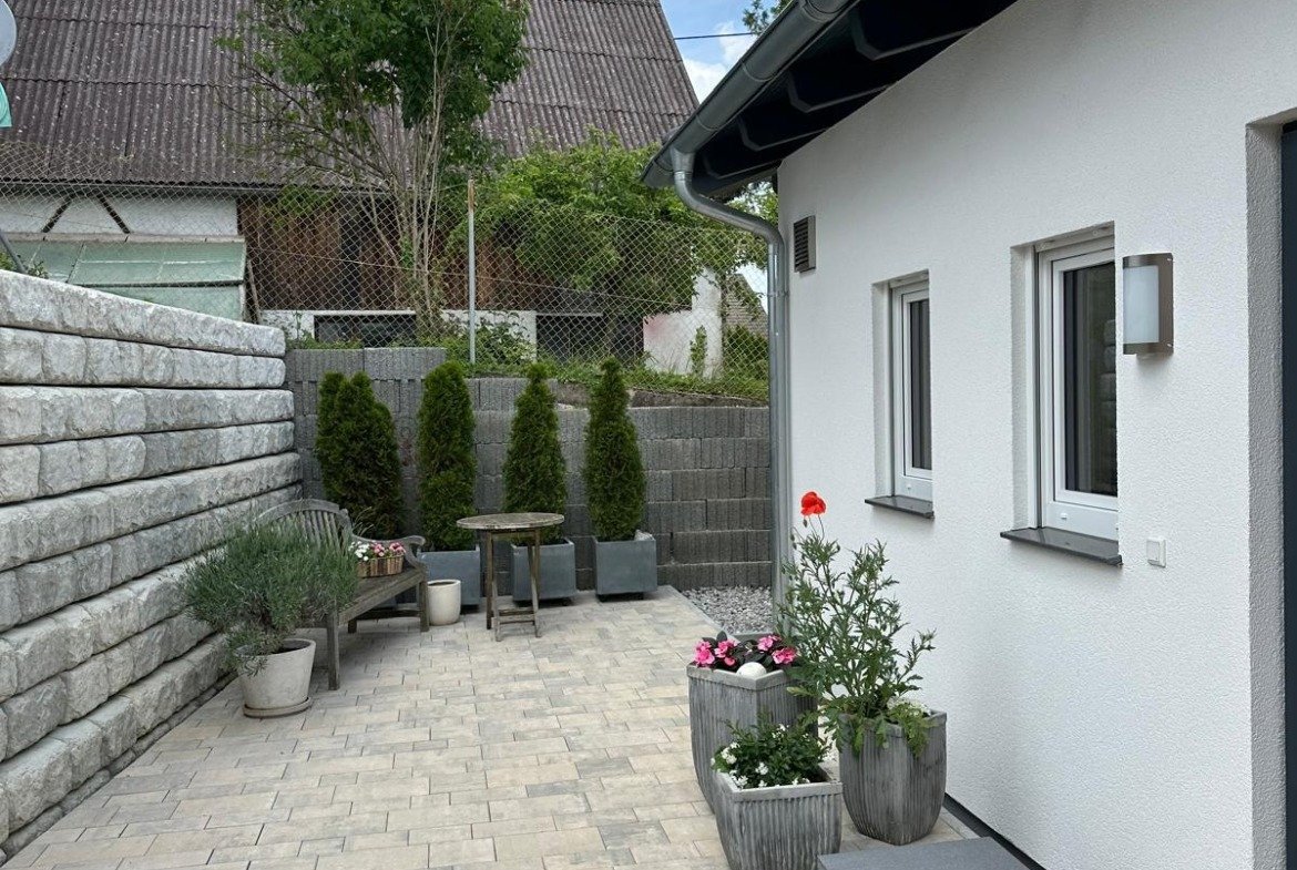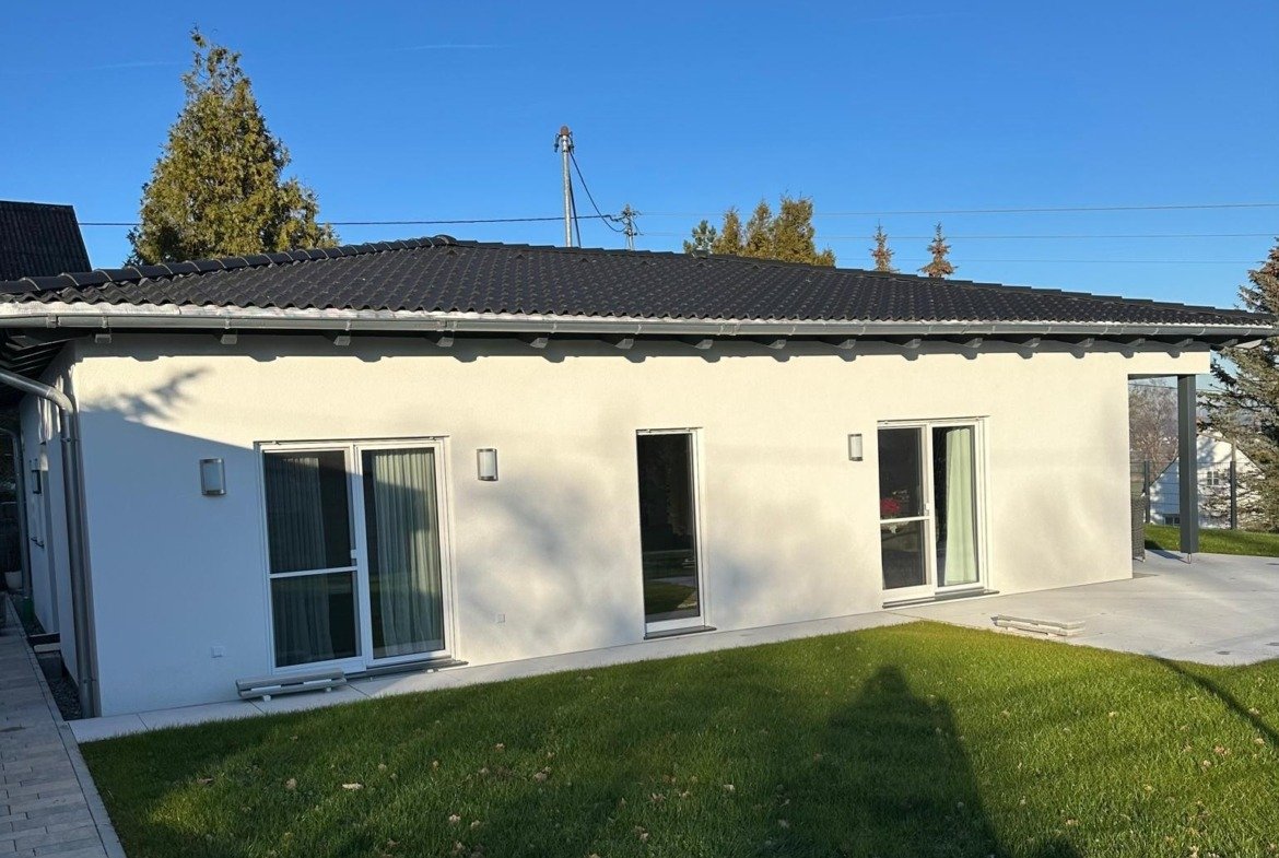 Der Bungalow, der überzeugt – exklusiv & sofort verfügbar Erleben Sie modernes Wohnen auf einer Ebene: • 5 Zimmer mit flexibler Nutzung • Großzügige, lichtdurchflutete Räume • Elektrische Rollläden, 3-fach verglaste Fenster, Gäste-WC • Klimafreundlicher Neubau mit PV-Vorbereitung • Zwei Terrassen (Ost & Süd) mit Blick ins Mindeltal • Optional: Platz für Pool vorhanden • Carport mit Abstellraum – bis zu 4 Stellplätze ???? Adresse: Leonhardsweg 3, 89343 Jettingen-Scheppach ???? Kaufpreis inkl. Einbauküche: 698.000 € ???? Exposé mit allen Infos im Anhang dieser Webseite verfügbar ???? Besichtigungstermin vereinbaren – wir freuen uns auf Ihre Anfrage!